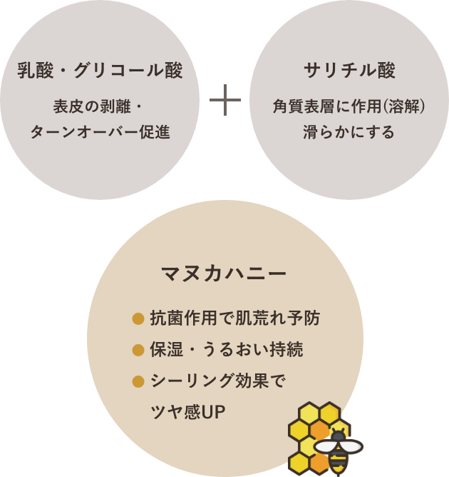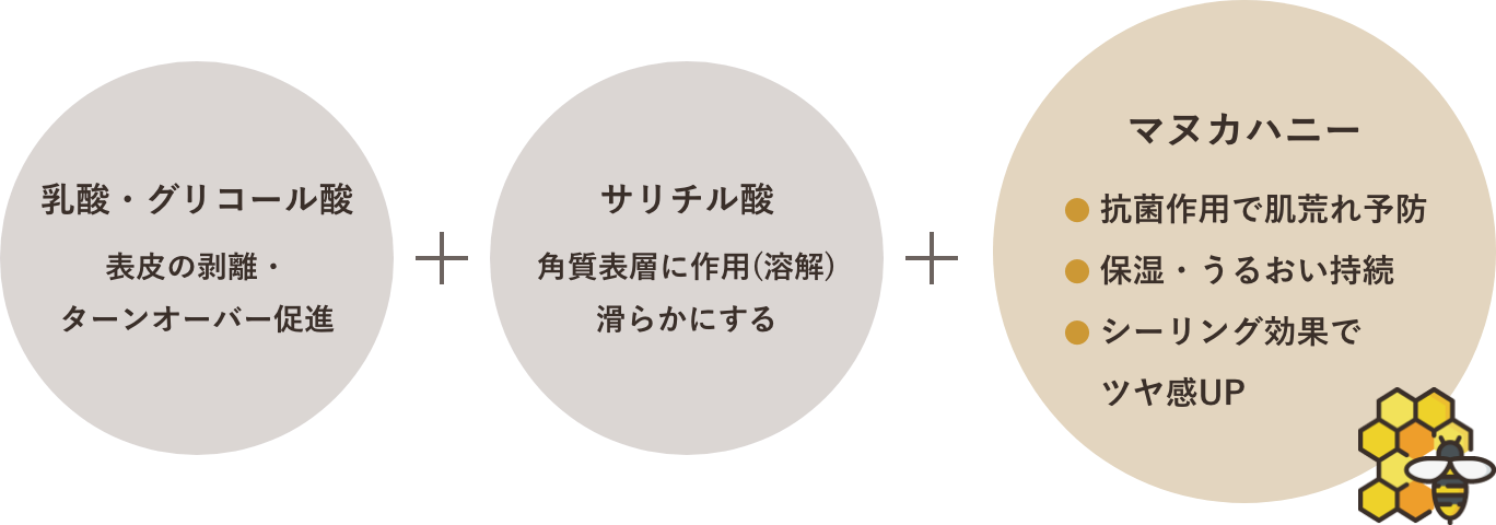 *乳酸、グリコール酸、サリチル酸、マヌカハニーをバランスよく配合 - お仕上げ